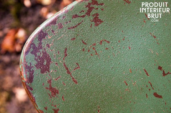Une table réalisée tout en métal dont vous apprécierez la finition verte - rouille patinée à la main et vernie pour en faciliter l'entretien.