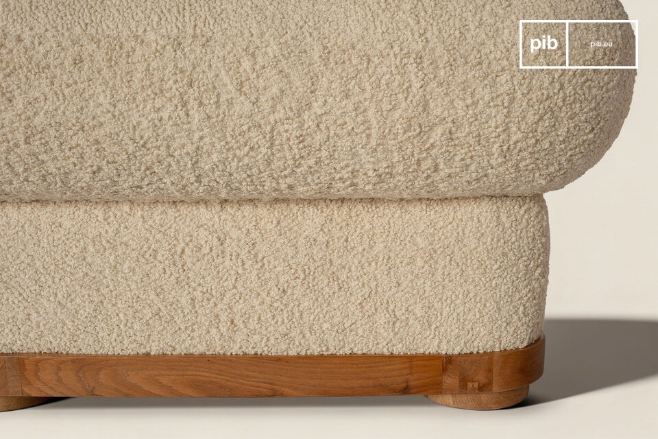Die zylindrischen Armlehnen und die niedrige Rückenlehne bilden eine durchgehende Linie und schaffen so ein skulpturales Objekt, das man aus allen ?Blickwinkeln? genießen kann. Der Anspruch an die Materialien spiegelt sich in einem dichten Schlingengewebe wider, dessen unregelmäßige Schlingen das Licht sanft einfangen. Diese warme Hülle ruht auf einem sichtbaren Gestell aus massiver Eiche, das eine robuste Stabilität ohne Schnörkel garantiert.